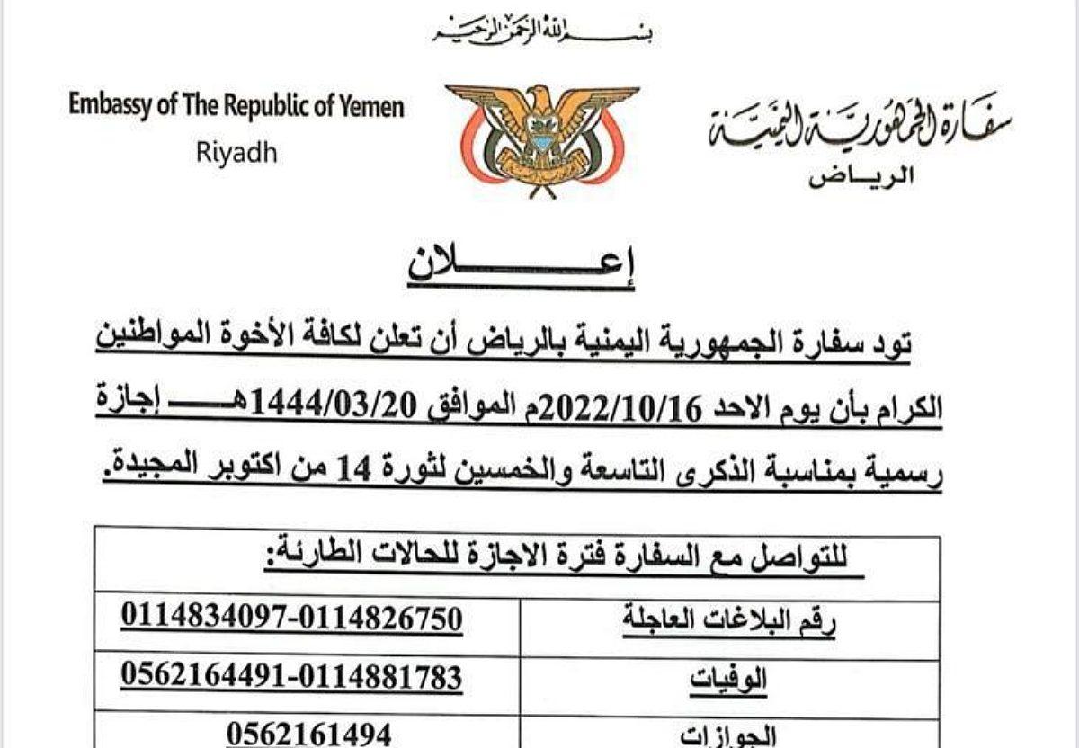 السفارة اليمنية بالرياض تنظم ندوة سياسية عن ثورتي سبتمبر وأكتوبر